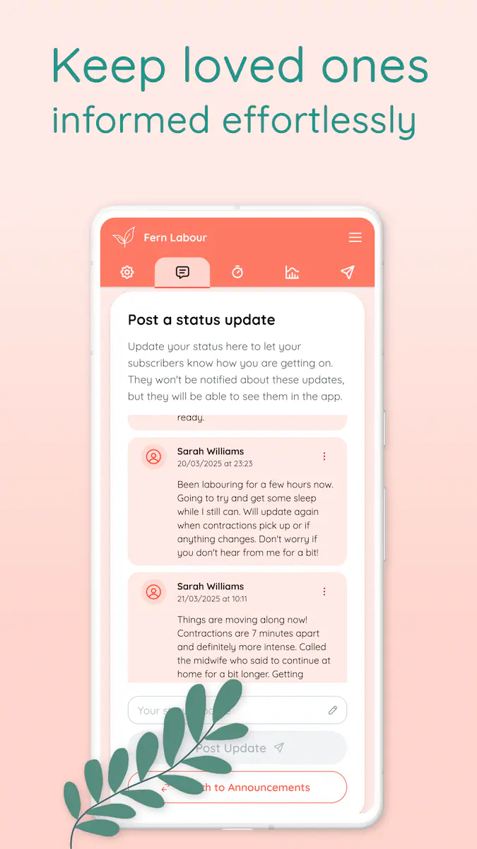 Keep loved ones up-to-date with status updates to prevent those annoying "Is the baby here yet?" messages.